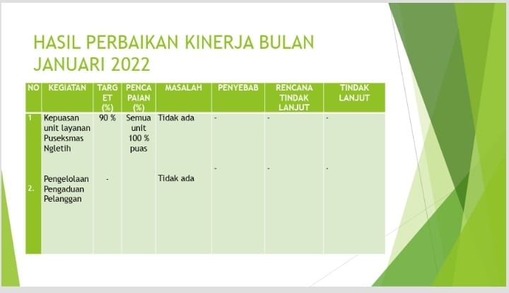 Hasil Perbaikan Kinerja Bulan Januari 2022