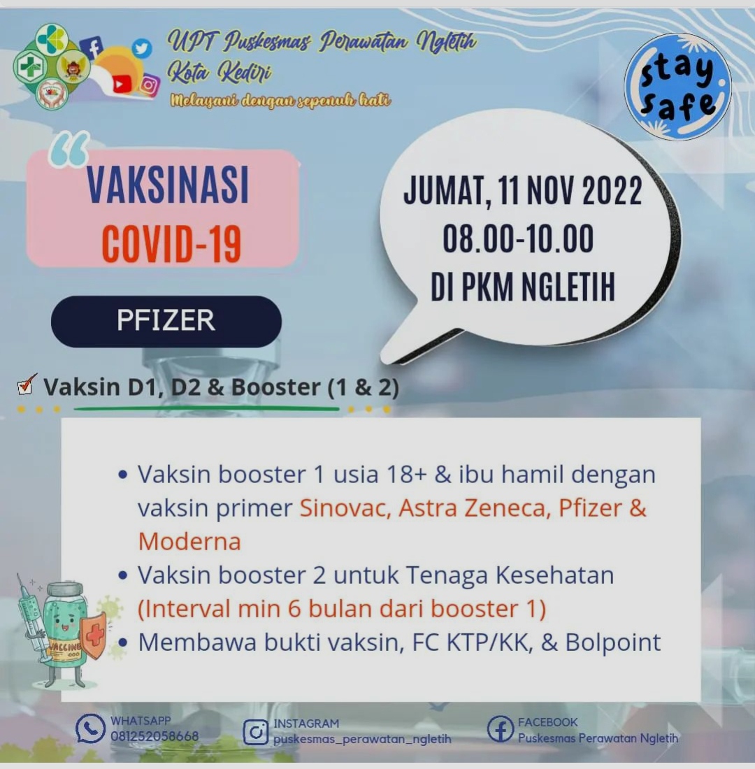 puskesmas_perawatan_ngletih Hallo sobat setia UPT Puskesmas Perawatan Ngletih. Ini info vaksin datang lagi, Vaksin Pfizer *Vaksin D1 dan D2 untuk Remaja 12-17…