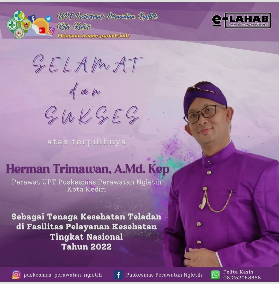 puskesmas_perawatan_ngletih Selamat kepada HERMAN TRIMAWAN,. A. Md. Kep. Atas penganugerahan sebagai Tenaga Kesehatan Teladan di fasilitas Pelayanan Kesehatan…
