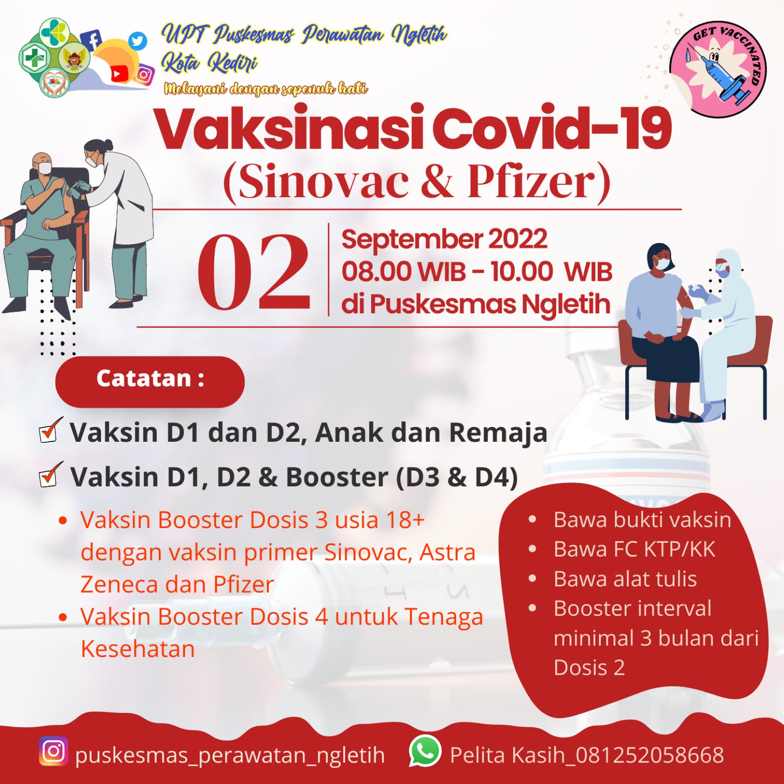 puskesmas_perawatan_ngletih Info vaksinasi UPT PUSKESMAS PERAWATAN NGLETIH VAKSINASI COVID 19 VAKSIN SINOVAC DAN PFIZER * Dosis 1 Dan 2 anak Dan remaja * Dosis…