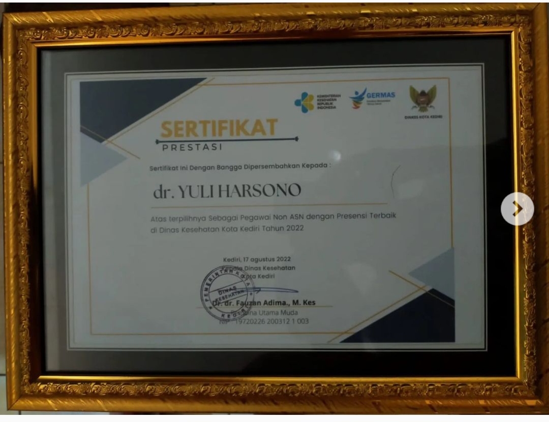 puskesmas_perawatan_ngletih Selamat Kepada dr. Yuli Harsono atas penghargaan sebagai Pegawai Non ASN dengan presensi terbaik di Dinas Kesehatan Kota Kediri…